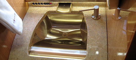 Stone is lovely. Stone is natural. But stone is also heavy and cold. In fact, the weight of stone makes it prohibitive in applications where weight is a concern. PolyStone Creations™ makes interior, lightweight designing with stone possible. We specialize in lightweight countertops and decorative surfaces for the aircraft industry. In our business, lightweight means a lot. We offer you the stone look without the bulk. Our unique, hand-crafted products deliver stunningly accurate stone-look fixtures at weights that you can use. With colors and patterns that are nearly limitless; leave the cold stone in the cave and enjoy the warm touch of PolyStone.
